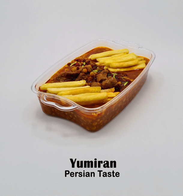 این غذا در ظرف پلی پروپیلن با درب پلمپ (مانند تصویر آخر) که قابل گرم کردن در مایکروویو می باشد ارسال می گردد.