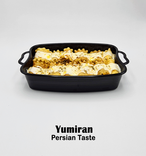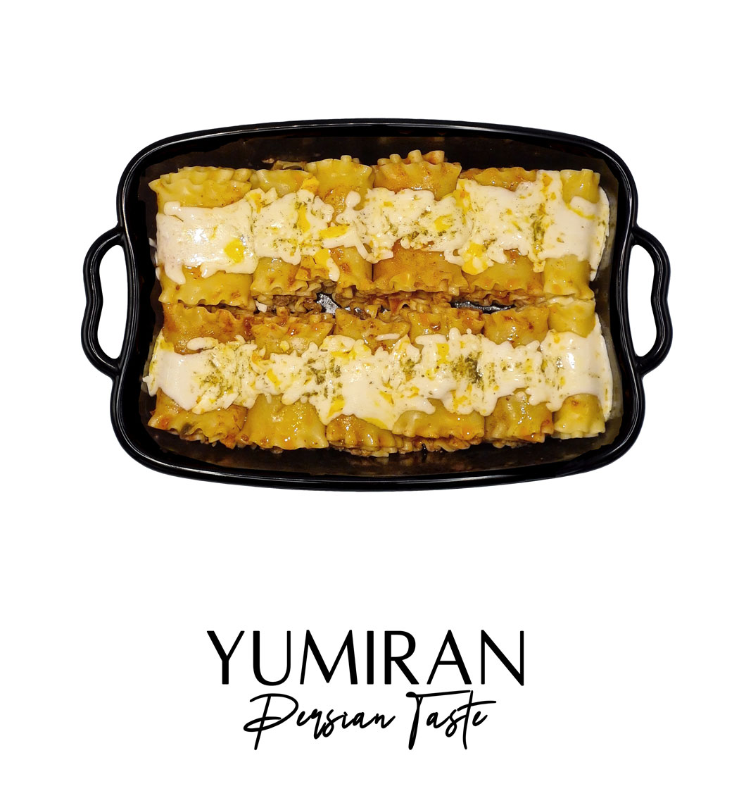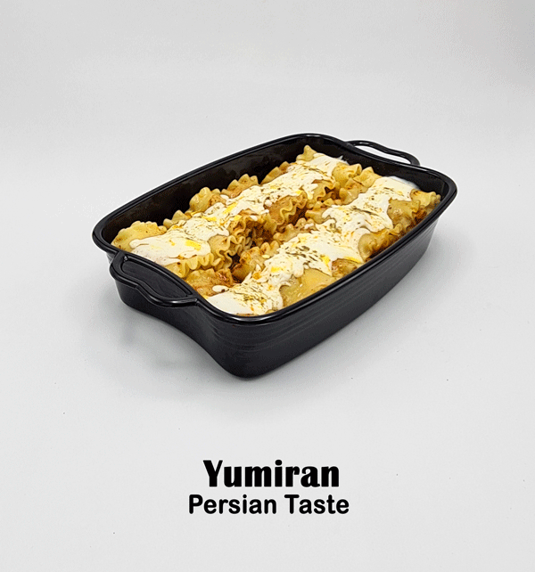 لازانیای یامیران شامل گوشت چرخ کرده تازه گوسفندی، ورقه لازانیا، پنیر پیتزا، قارچ، رب و … می باشد که با ادویه های مخصوص طبخ می گردد.